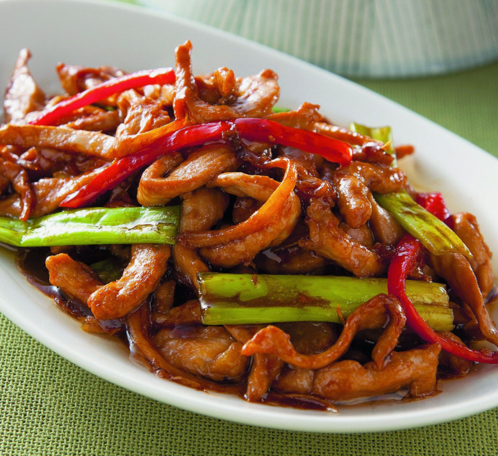 Свинина, жаренная с черными древесными грибами и яйцом “МуШу”