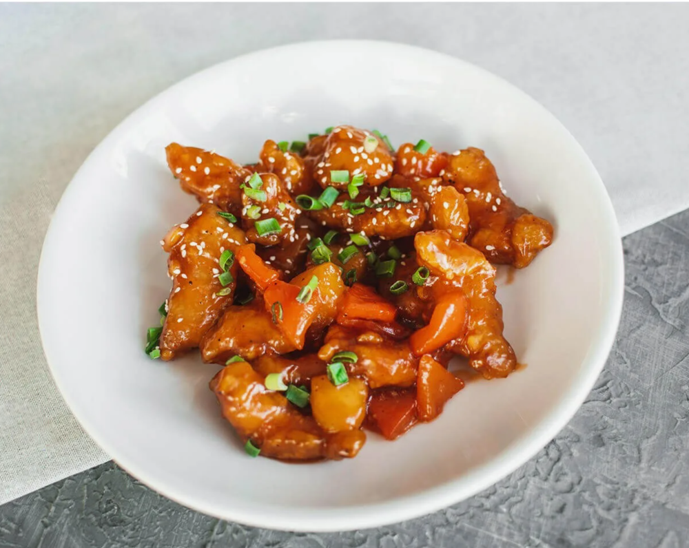 Цыпленок с орехами в пикантном соусе "Гунбао"