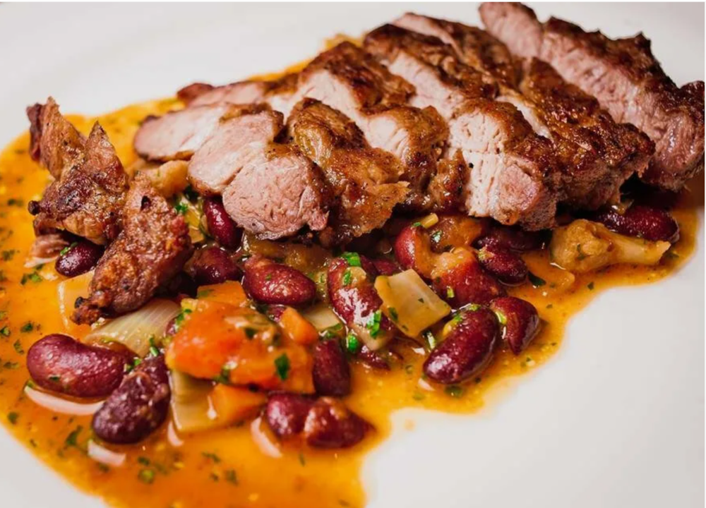 Ребрышки свиные, фасоль, лук, морковь, специи