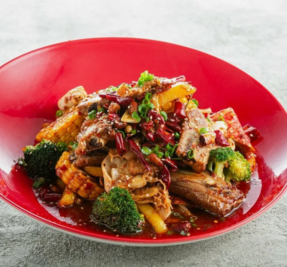Свинина в бульоне с перцем чили по-сычуаньски