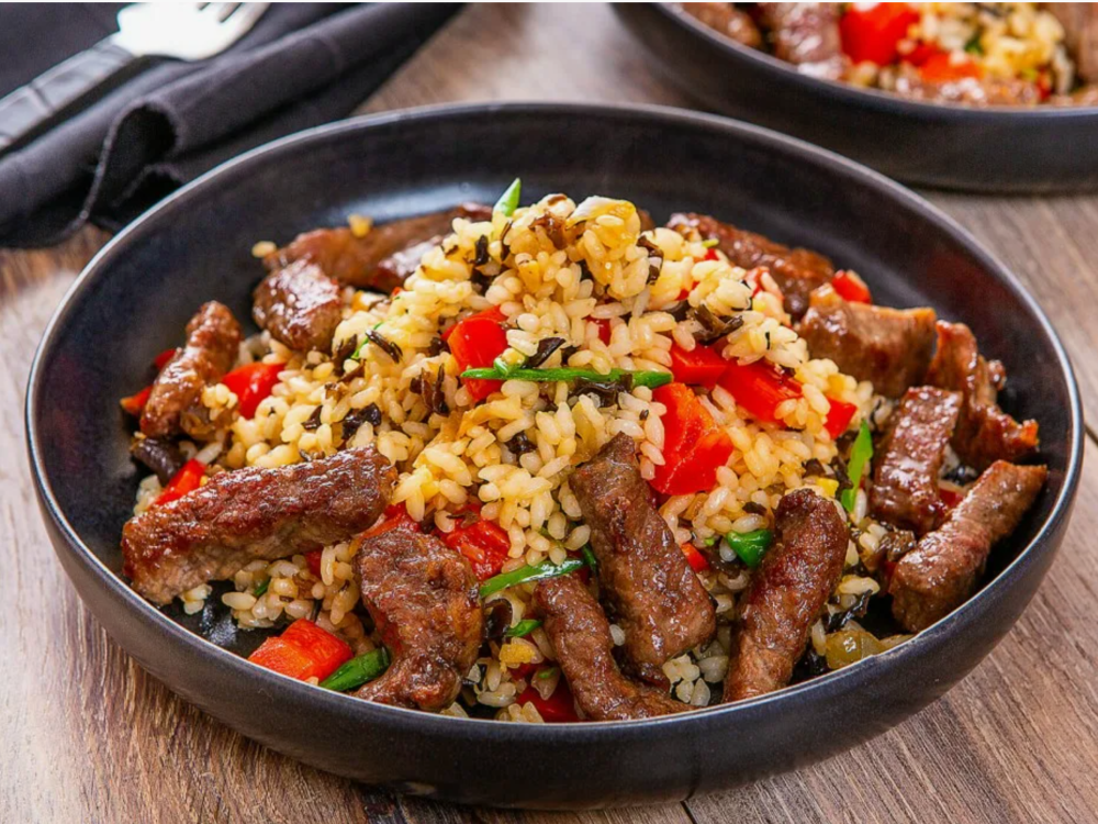 Жаренная говядина на раскаленном блюде в кисло-сладком соусе