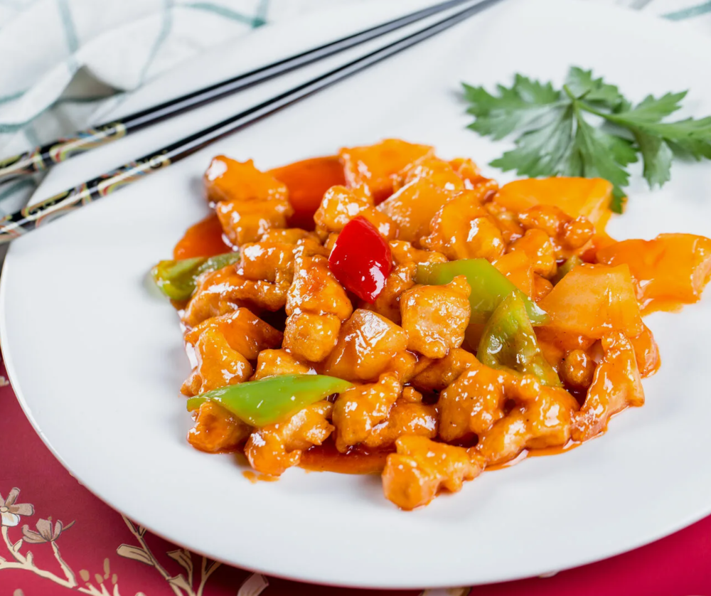 Жареная свинина с ананасом в кисло-сладком соусе “Гулао”