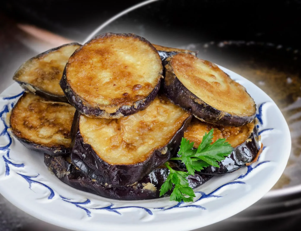 Жареные баклажаны в ароматном соусе с чесноком